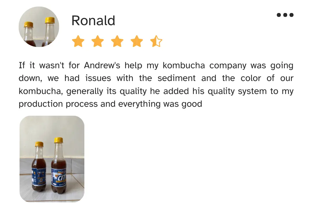 It’s a personalized consulting service where I build for you a Beverage Quality and Shelf life System that will enable you produce high quality products that are consistent in quality and have a longer shelf life